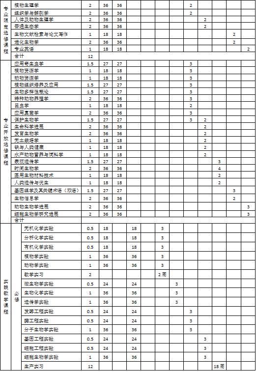 生物技术专业本科培养方案