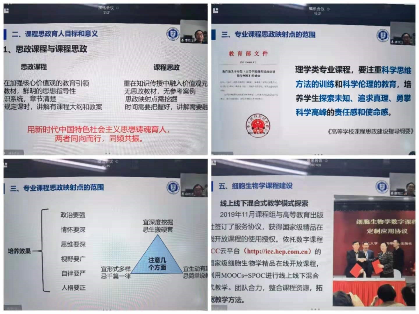 12月2日下午,棋牌游戏 邀请细胞生物学国家级课程思政示范课程负责人、河北大学棋牌游戏 党委书记康现江教授进行《课程思政学习思考与实践》的专题培训活动,培训以腾讯会议线上方式进行,各教研室主任组织相关教师聆听了讲座。