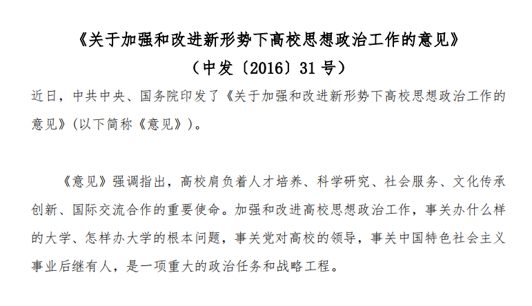 关于加强和改进新形势下高校思想政治工作的意见-2016